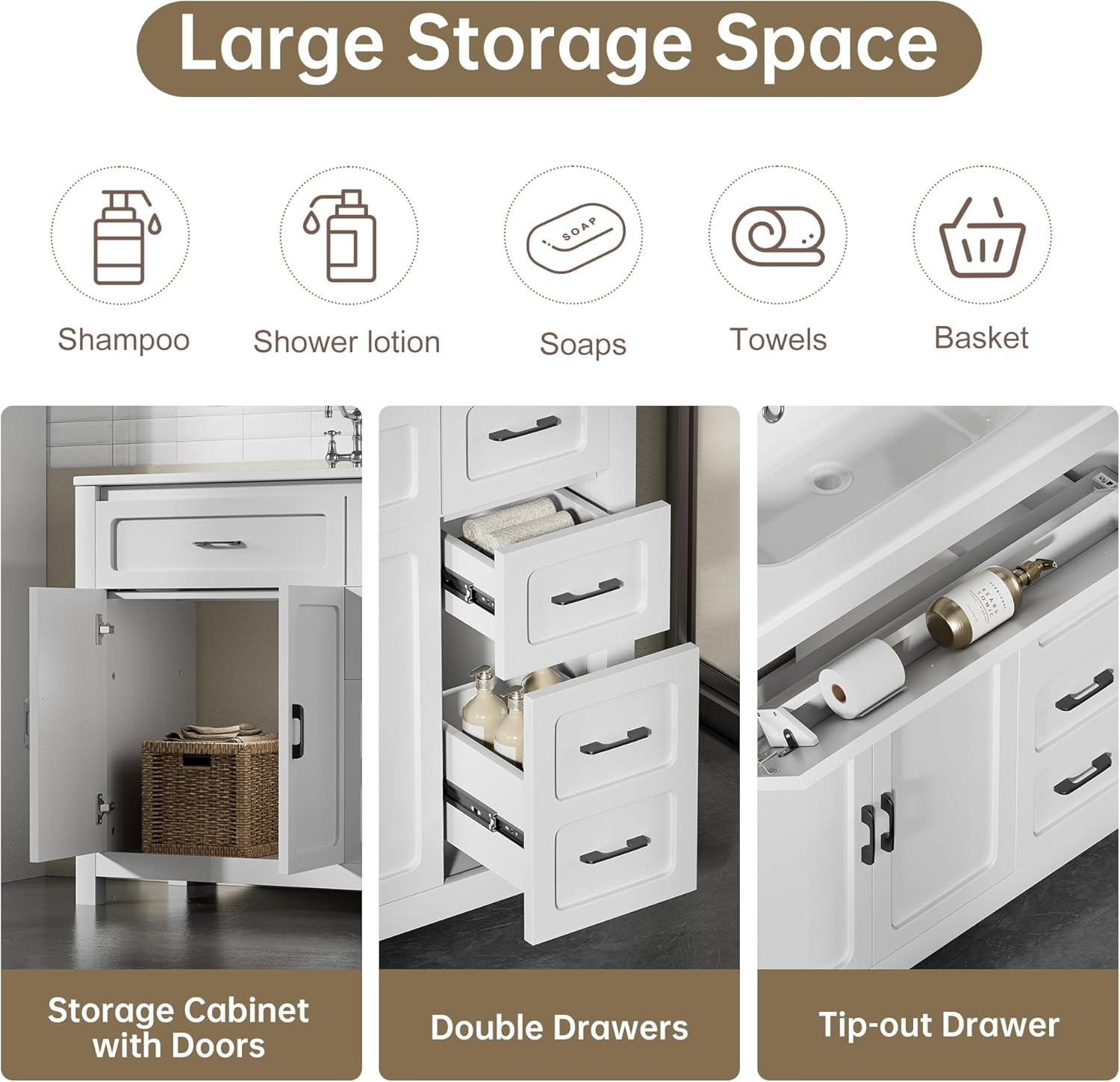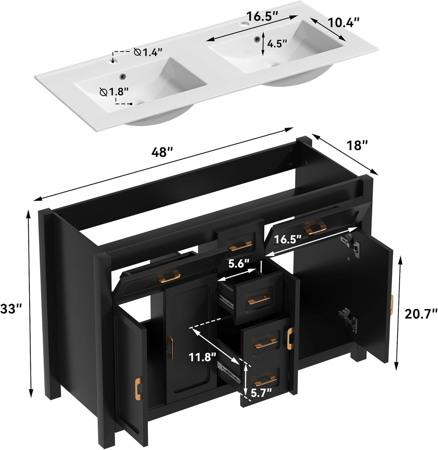 48" Bathroom Vanities with Sink Combo Modern Thickened Wood Bathroom Storage Cabinet Undermount Double Sink, with 4 Soft Closing Doors & 4 Drawers,Black