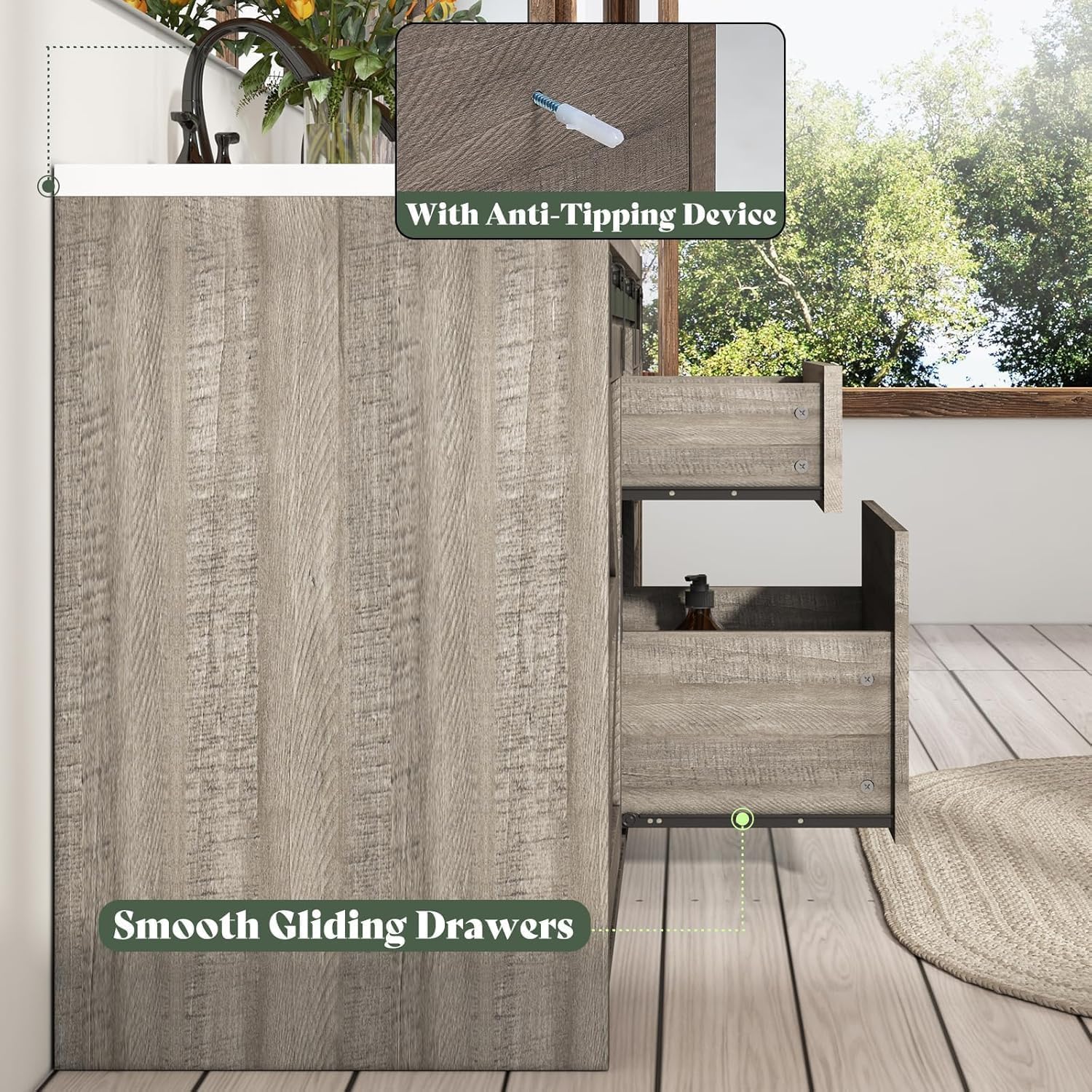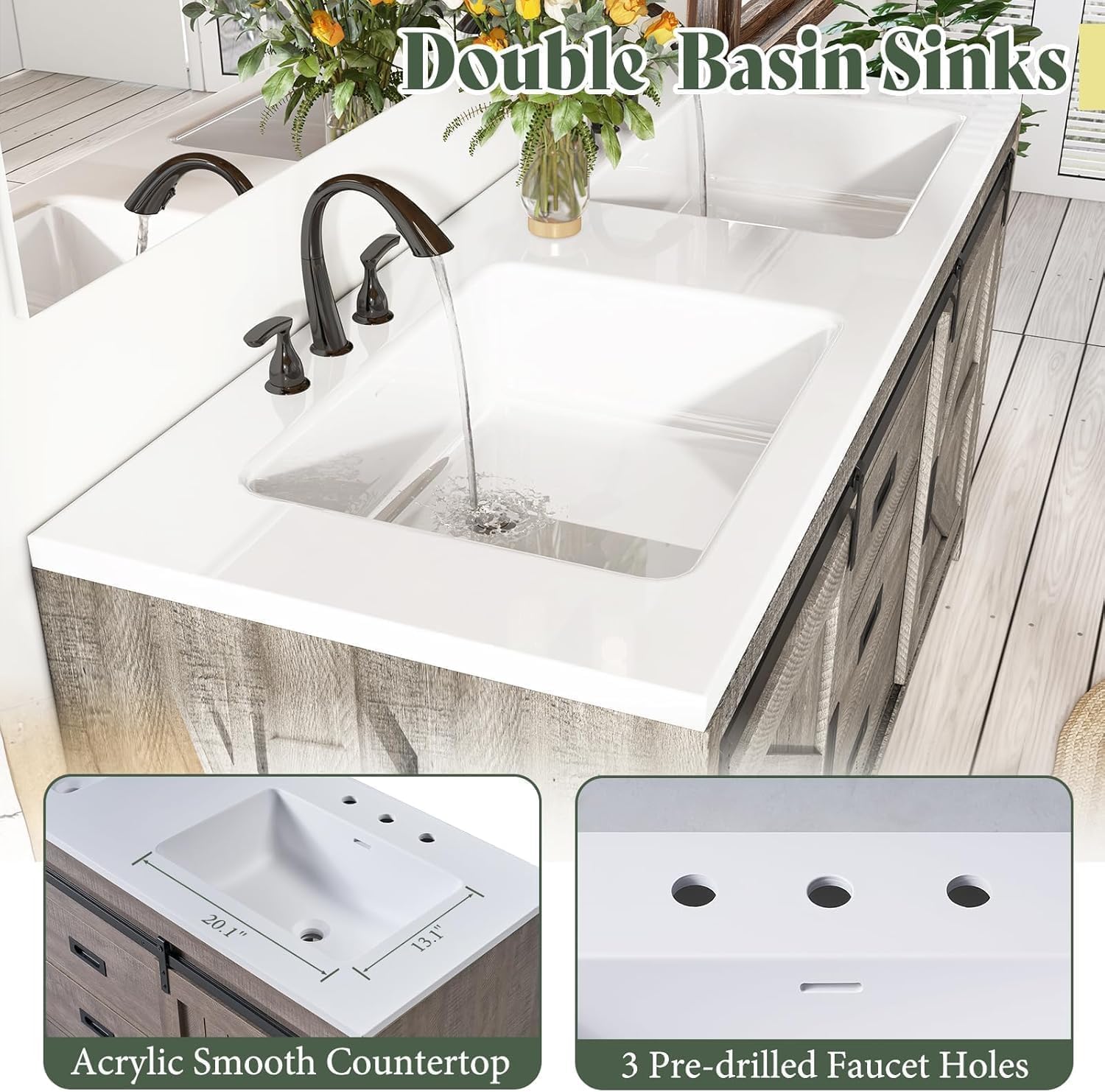 60" Farmhouse Bathroom Double Vanity Sliding Barn Door with Sink Combo, Bathroom Vanity Cabinet with Drawers & Metal Handles, Freestanding, Gray