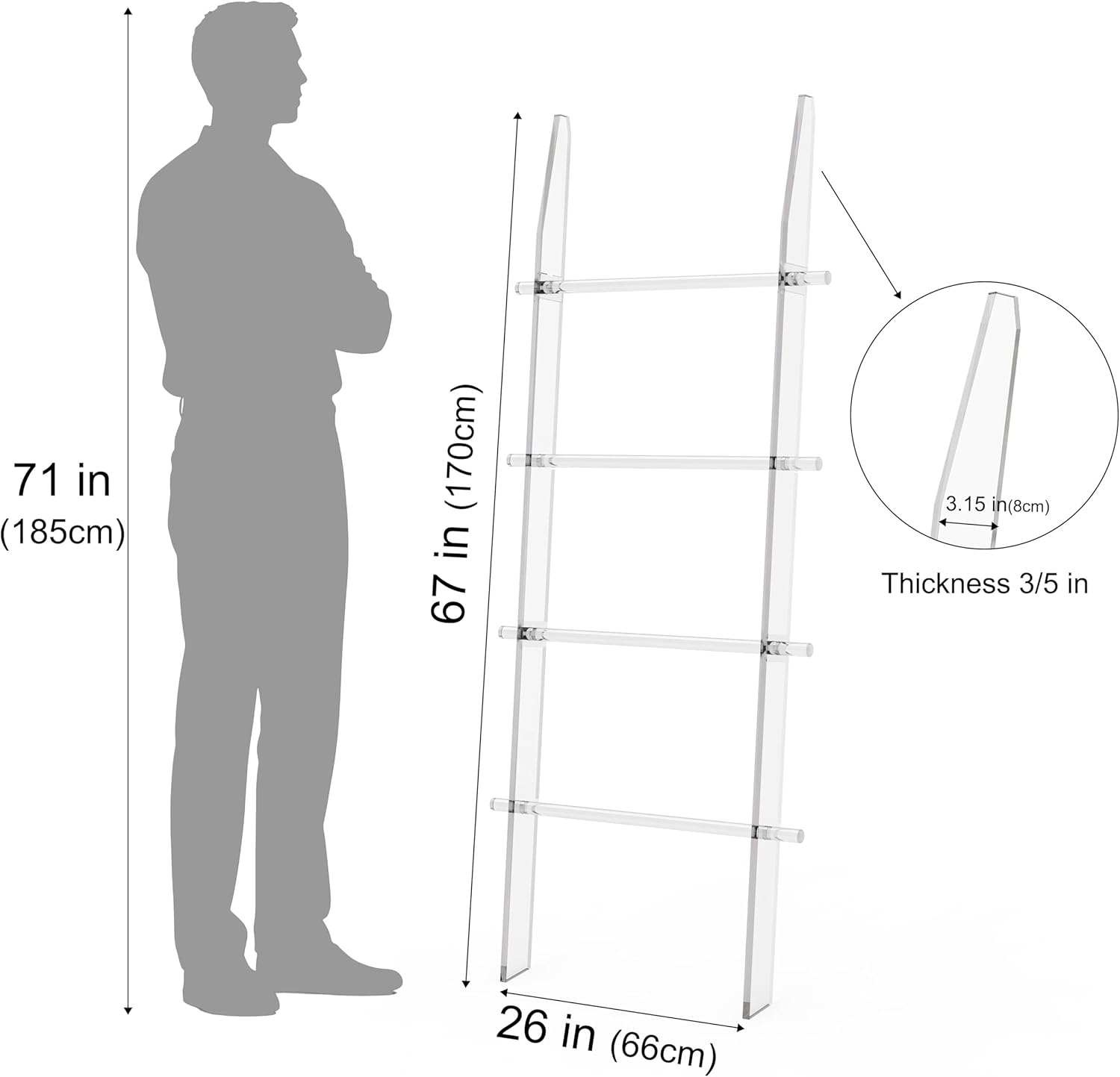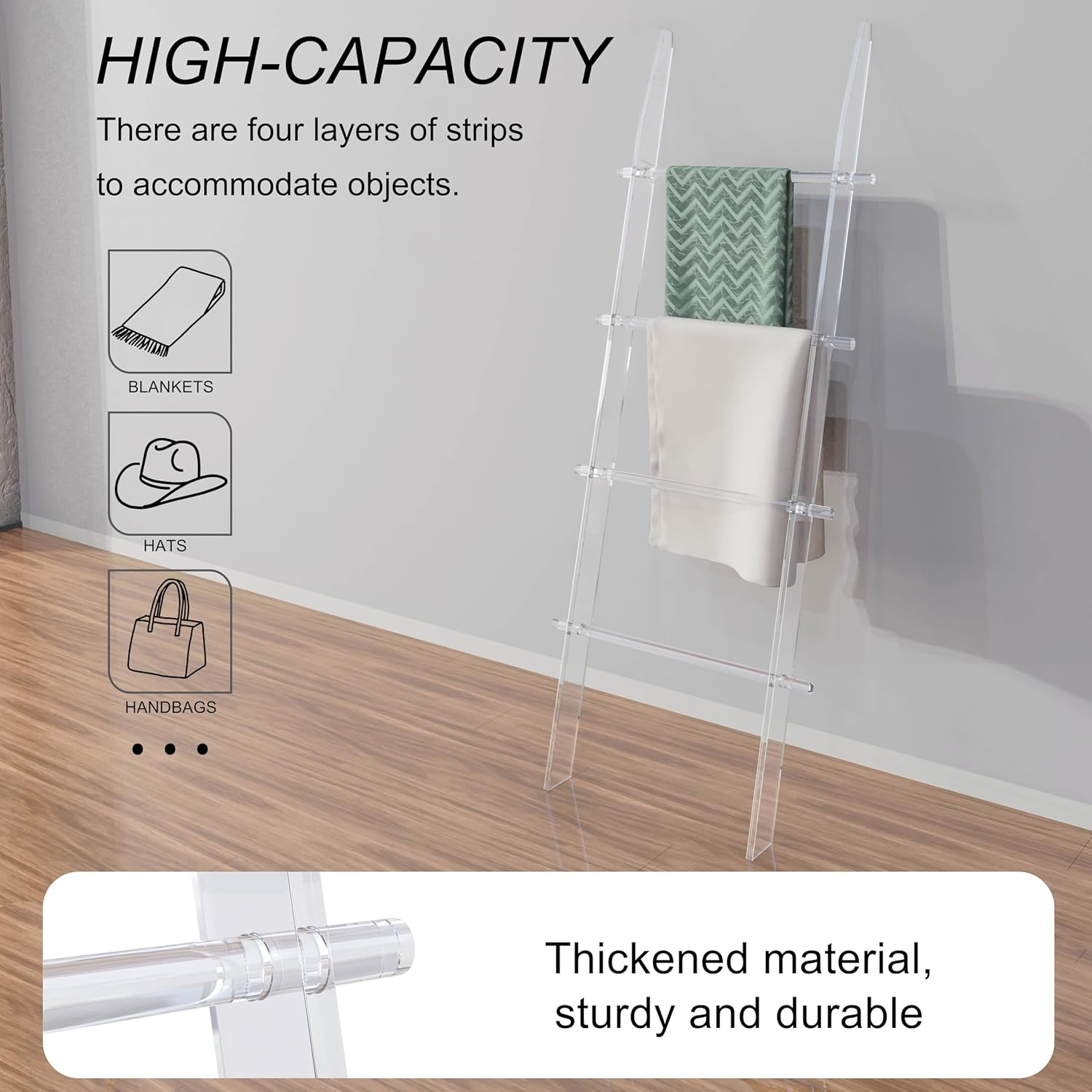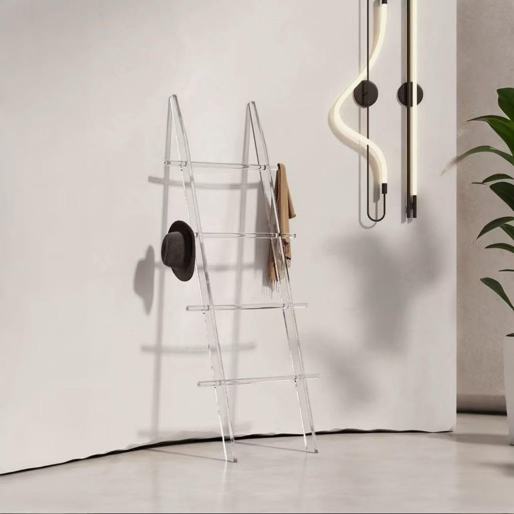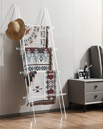 Blanket Ladder for Living Room and Bedroom, 4 Tier Transparent Anti Slip Wall Leaning Towel Rack, Waterproof Blanket Towel Rack, Quilt Shelf, Easy Assembly