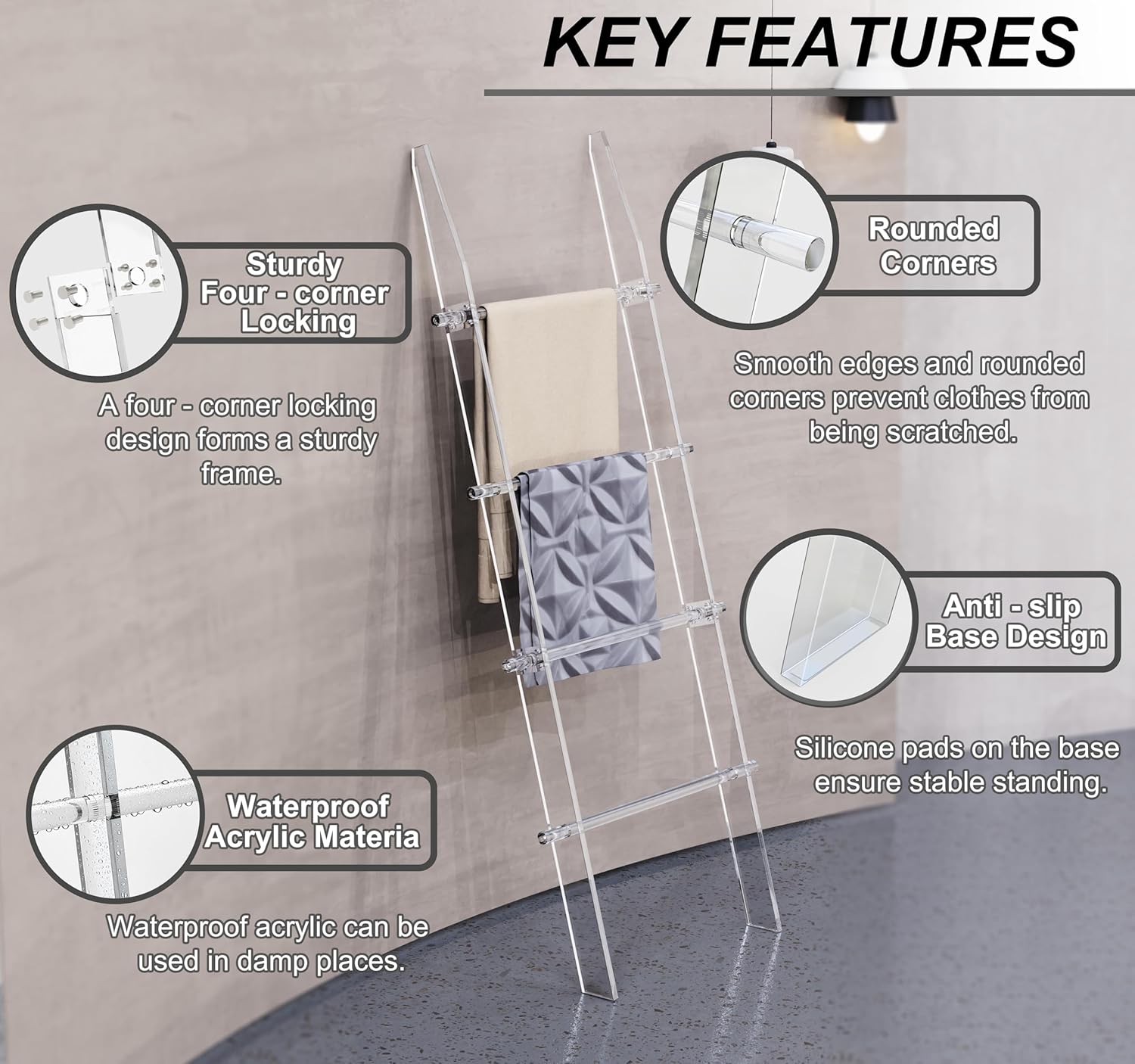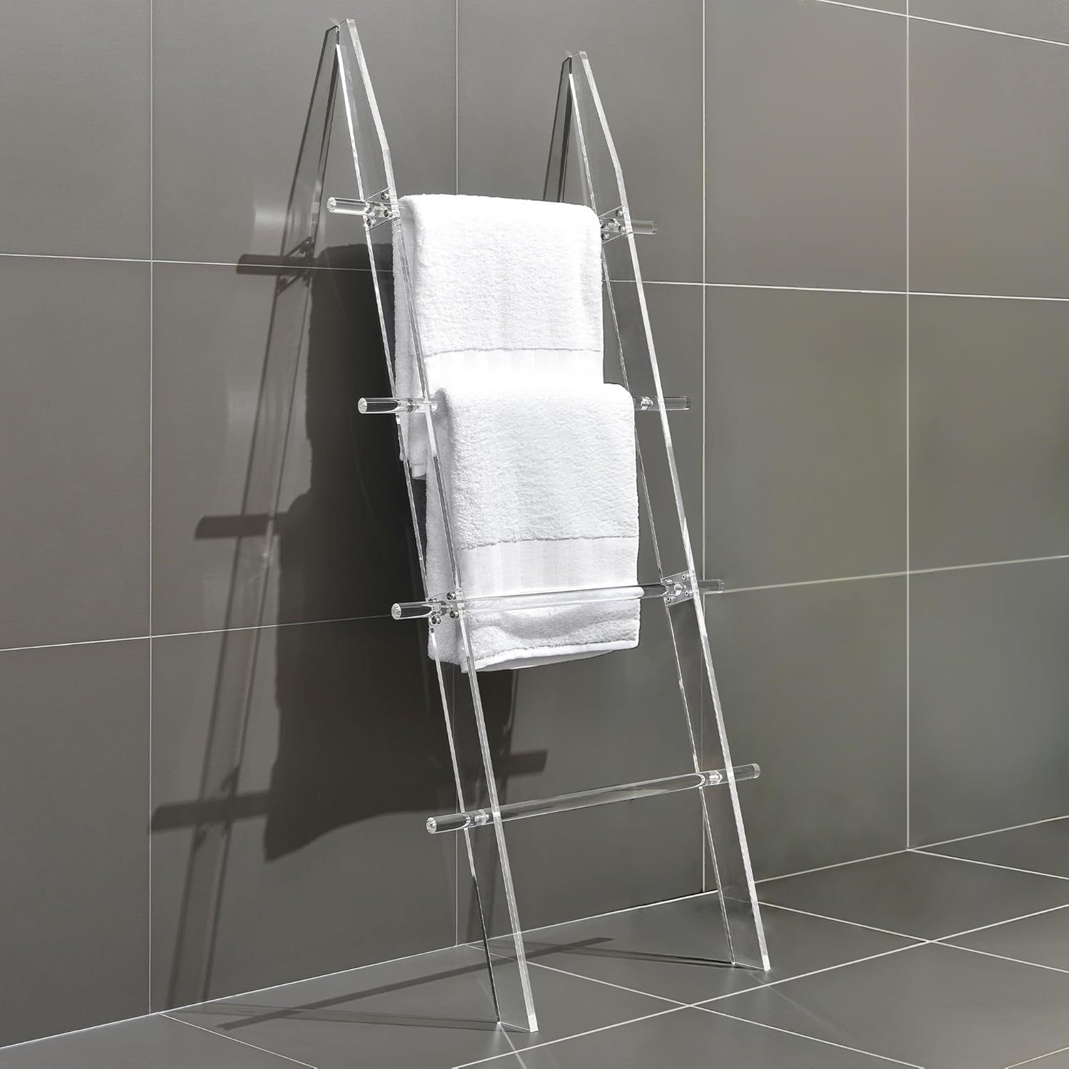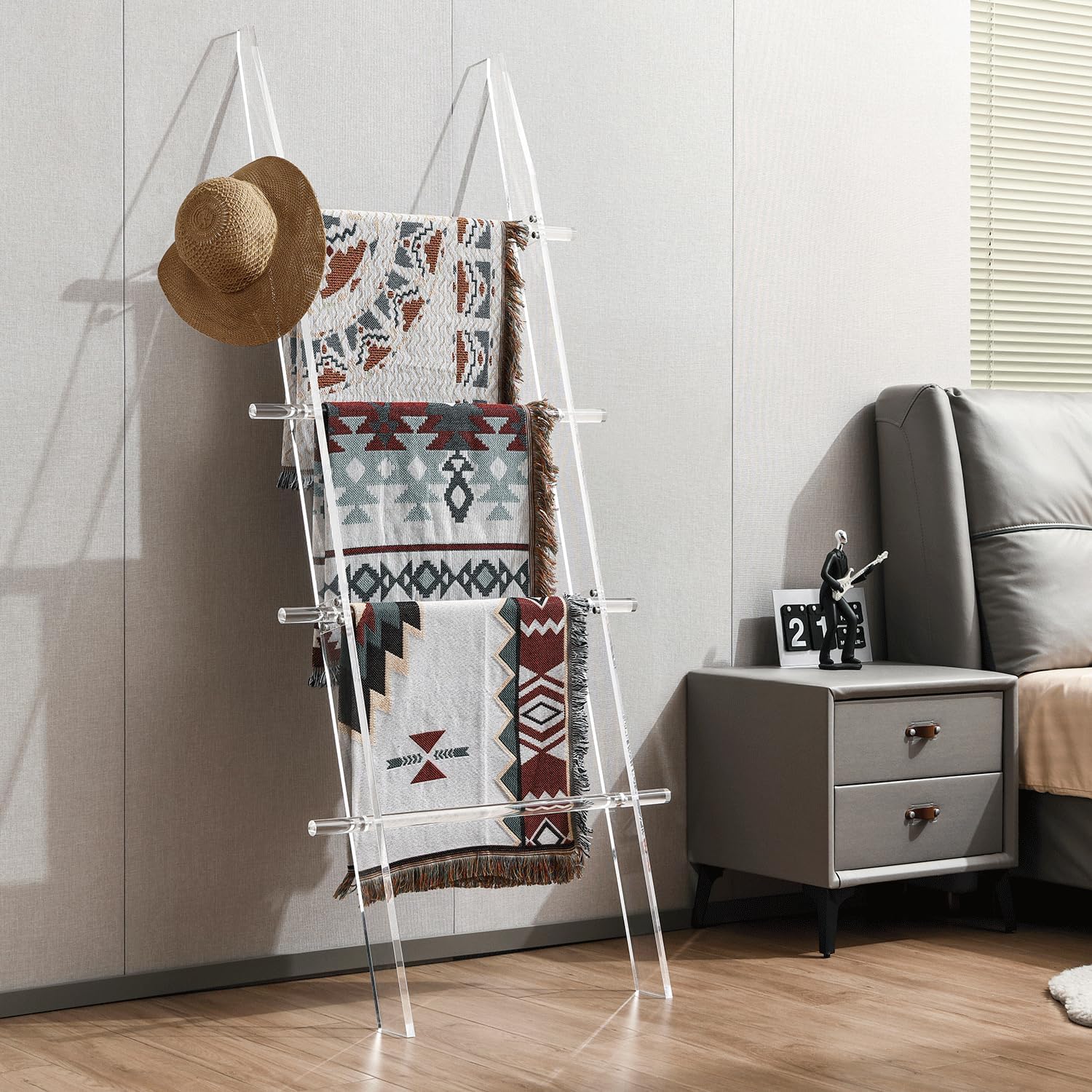 Blanket Ladder for Living Room and Bedroom, 4 Tier Transparent Anti Slip Wall Leaning Towel Rack, Waterproof Blanket Towel Rack, Quilt Shelf, Easy Assembly