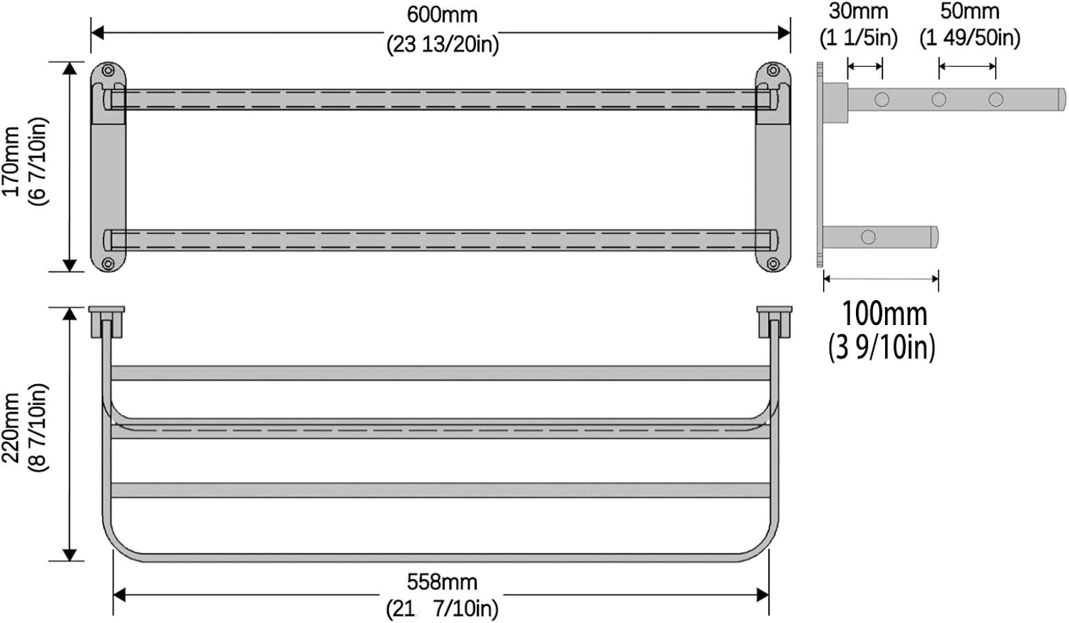 BOZWELL Bathroom Lavatory Towel Rack with Two Towel Bars,24-Inch Towel Holder with Shelf BZ205-A (Matte Black)