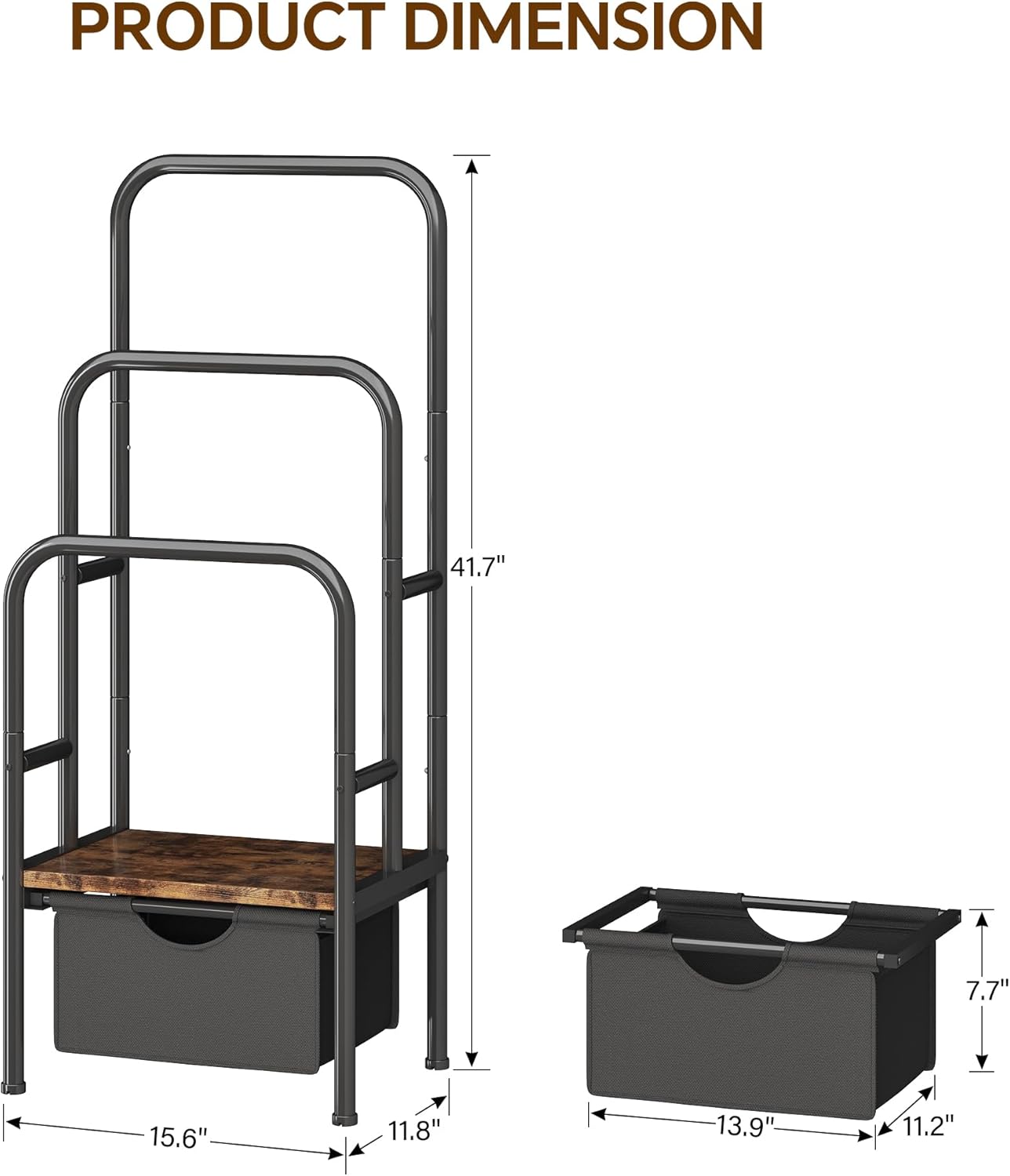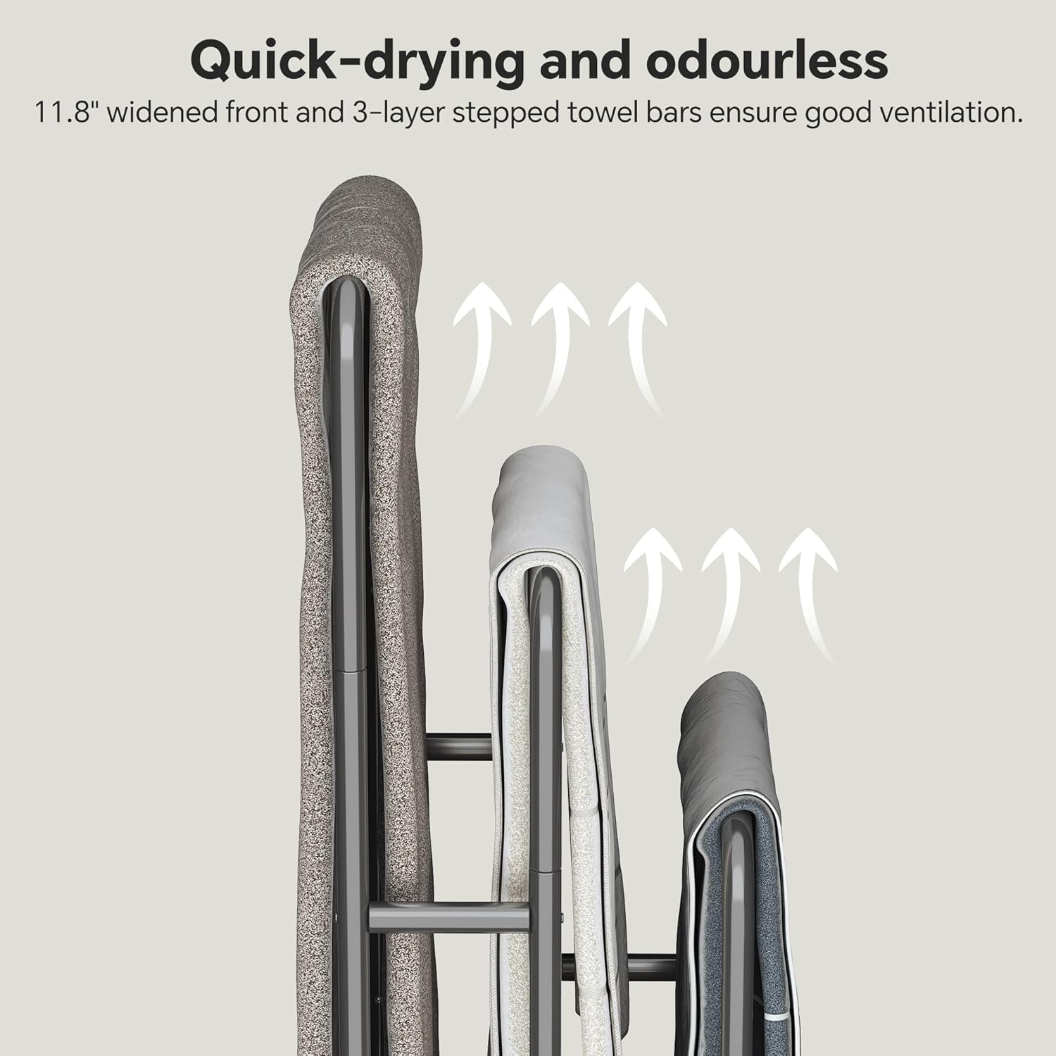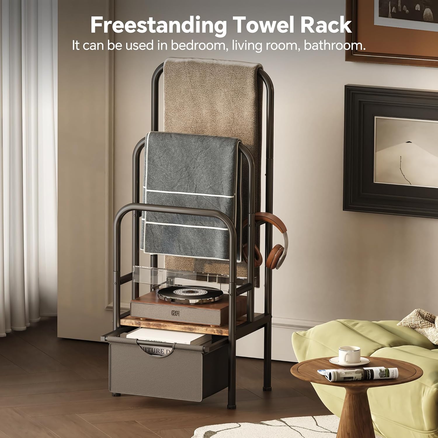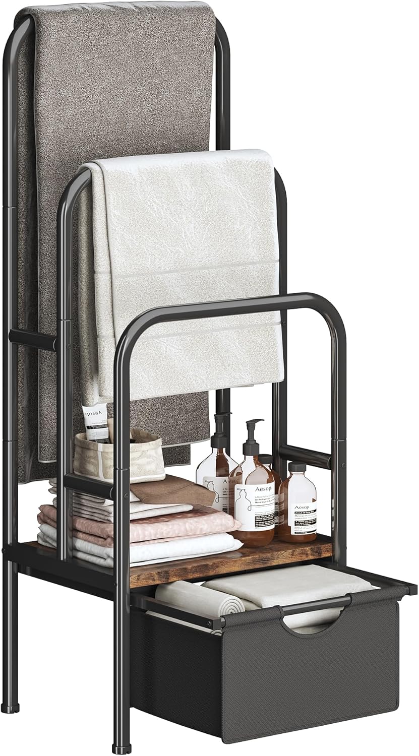 Freestanding Towel Rack for Bathroom & Blanket Holder - 3-Tier Quick-Dry Shelf, 15.6" L x 11.8" W x 41.7" H, Retro Style Floor Stand for Bedroom/Living Room,Rustic Black Brown