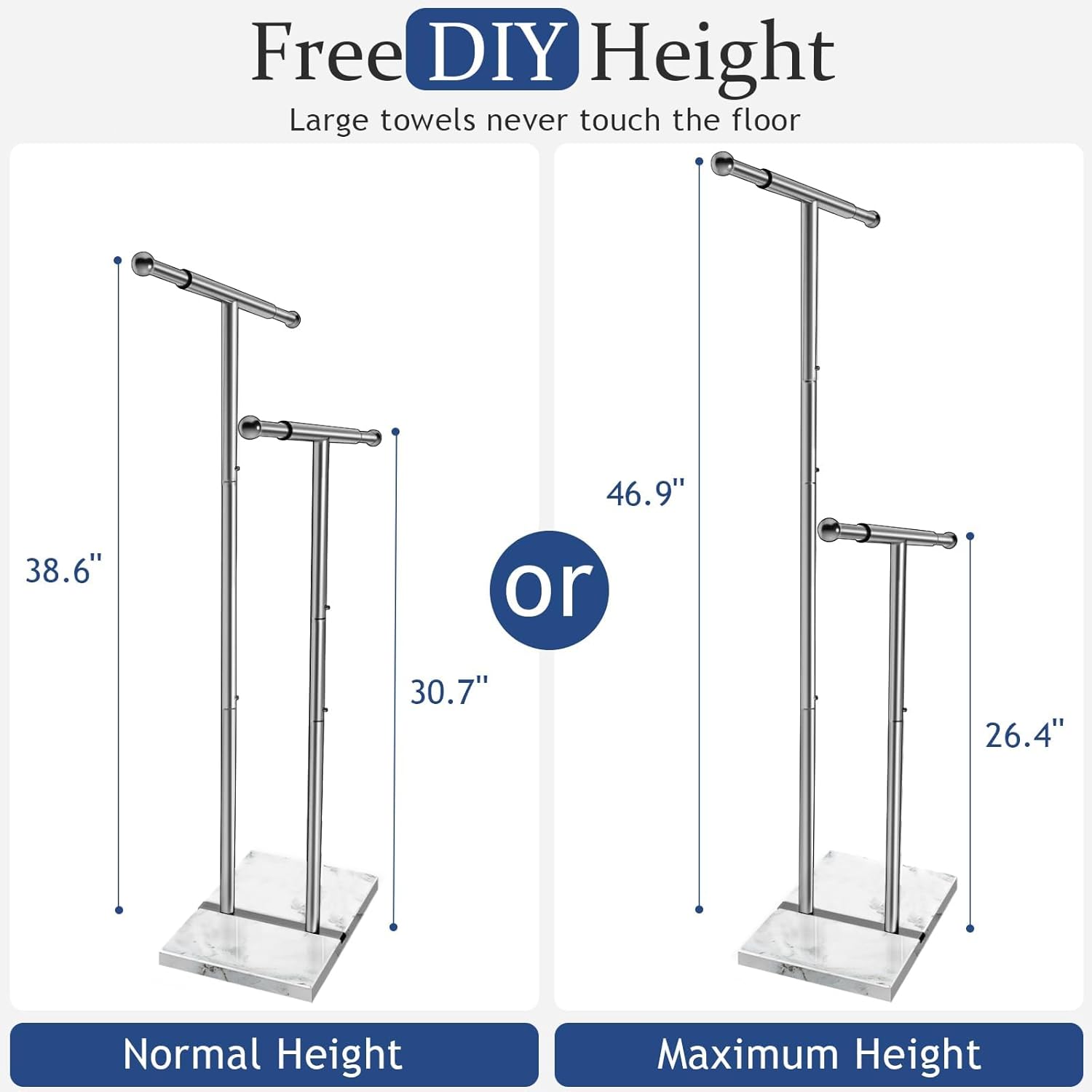 Kayfia 40" Standing Towel Rack with Weighted Marble Base, Width Adjustable & Taller Bathroom Towel Rack Stand, 2-Tier Towel Racks for Bathroom, Multiple Spaces Stainless Steel Brushed Finish
