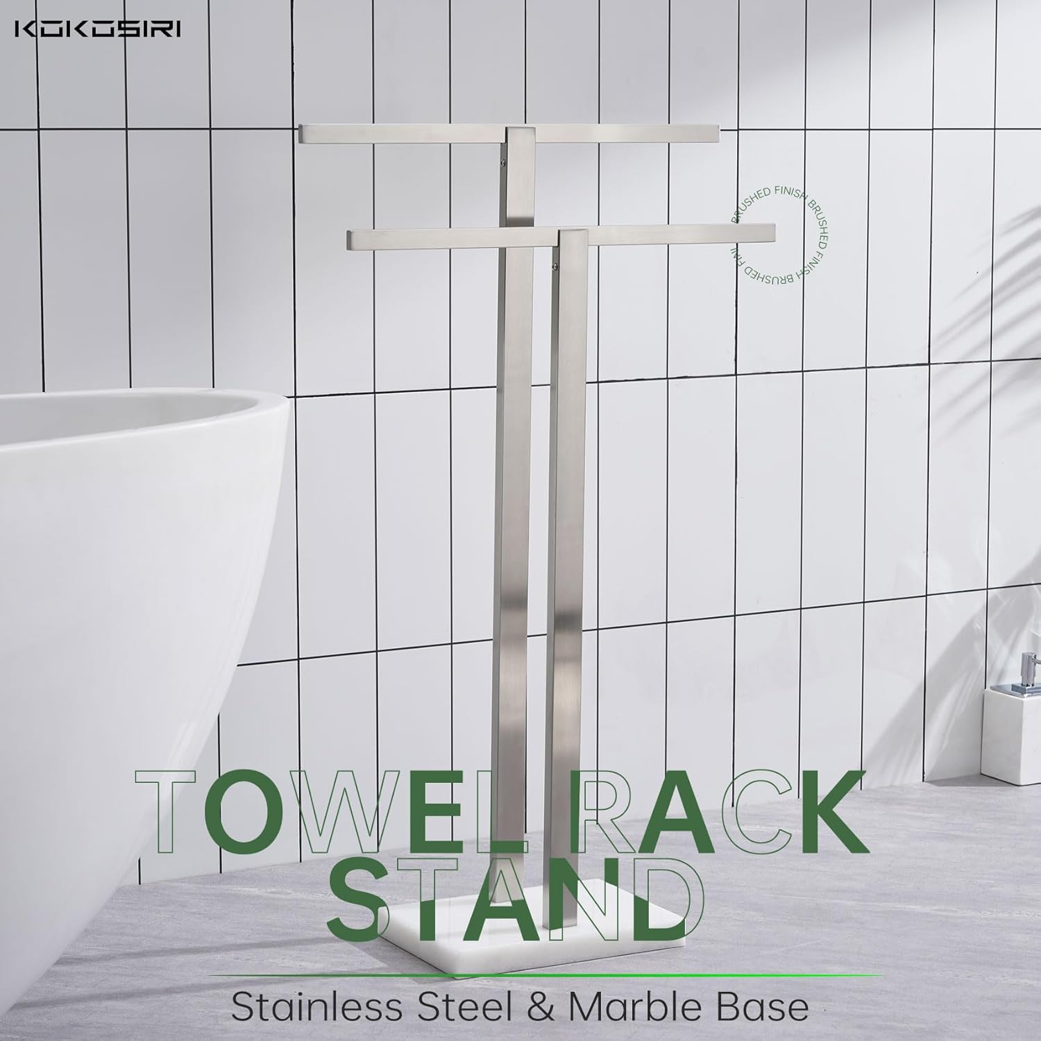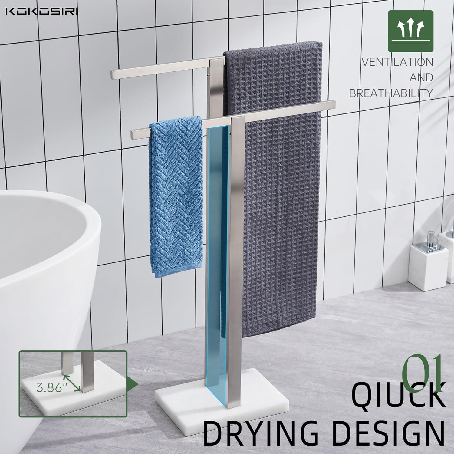 KOKOSIRI Bathroom Towel Rack 2-Tier Standing Towel Racks with Marble Base, Stainless Steel Freestanding Towel Bars, Thicken Steady Design, Brushed Nickel THS0001-BR