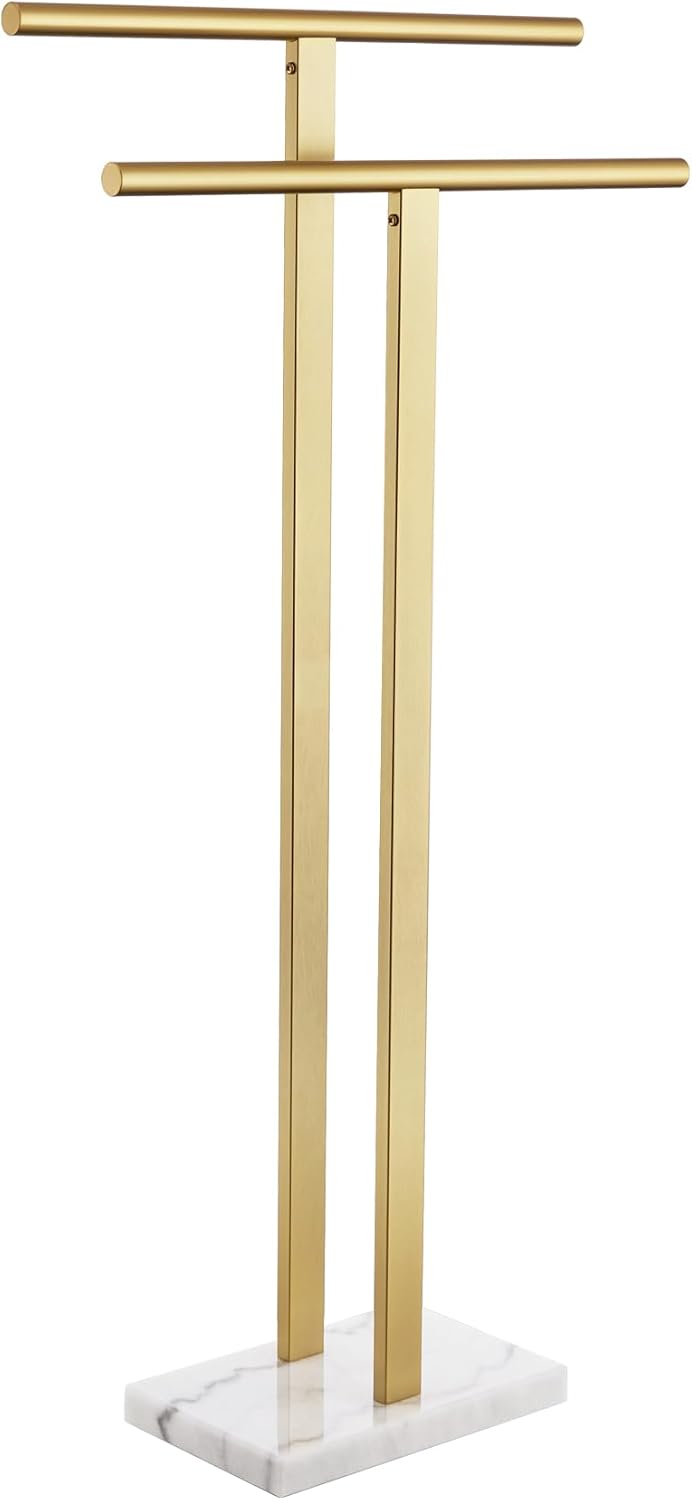 KOKOSIRI Standing Towel Rack for Bathroom Floor 2-Tier Towel Holder Free Stand with Heavy Marble Base Thicken Steady Design Gold Stainless Steel THS0005-BG