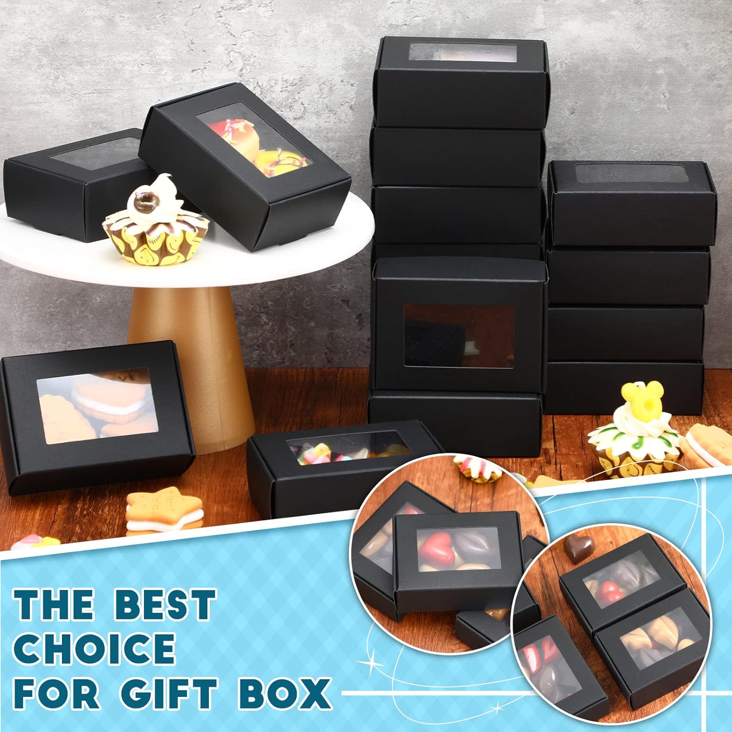 Zonon 300 Pieces Soap Boxes for Homemade Packaging Small Kraft Treat Boxes with Window Present Holder for Candy Bakery Soap Making, 3.54 x 2.44 x 1.26 Inch(Black)